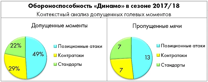 Как и любая команда, которая заточена под контратаки, «Динамо» отличается отменной «отбороспособностью» (лучший показатель в лиге по отборам и четвертый по перехватам) и из ситуаций с переходом владения извлекает максимум пользы (14 голов из 20 – после отборов, перехватов и подборов).