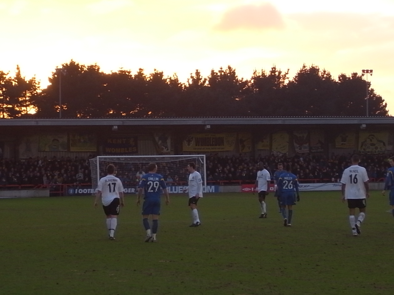 На 90-ой минуте Малли поставил точку в матче после выхода один-на-один, При этом казалось, что после того как он перекинул мяч через вратаря, тот уйдет в аут, но попав в кочку, он залетел в ворота от штанги. К этому времени Кедуэлл стоял у кромки поля с партнером по команде и досматривал игру. Минут за 15 до конца игры ко мне подошло дитё лет пяти в шапке и шарфе "АФК Уимблдона" и звонким голосом вежливо поинтересовалось, нельзя ли ему здесь рядом встать. "Пожалуйста, молодой человек" и я немного подвинулся, а дитё, поддерживаемое матерью примостилось на заборчике.