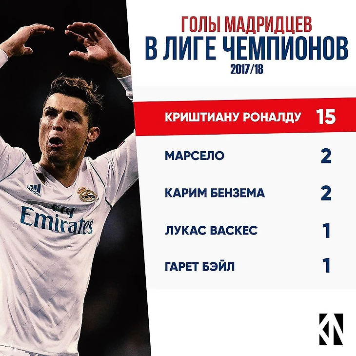 Роналду в этом сезоне стал первым, кто забил во всех турах группового этапа. В шести матчах португалец отличился девять раз. Также Роналду забил в обоих поединках 1/8 финала, обеих встречах 1/4 финала и возглавляет бомбардирскую гонку с 15 голами. В его активе, как минимум, один гол в каждом матче текущего турнира. Два лучших результата в истории принадлежат Роналду - 17 (2013/14) и 16 голов (2015/16).