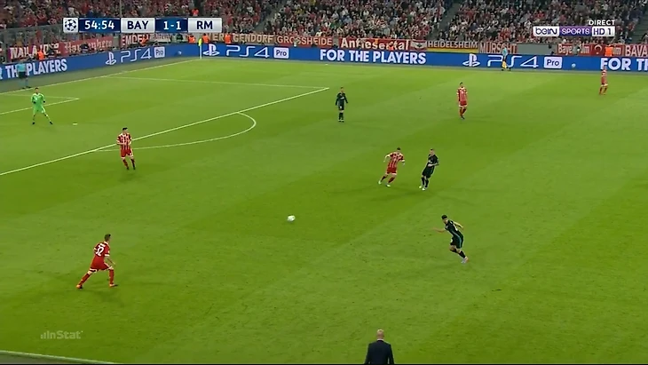 Ожидаемо, что в голе «Бавария» вскрыла именно этот фланг, хотя сам эпизод не был показательным. Он требовал прямо сверхбыстрой реакции и, вероятно, растерялись бы и более грамотные в плане игры без мяча футболисты. Хотя то, как Кроос в заключительной стадии банально забил на рывок Йозуа Киммиха, – ужасно.