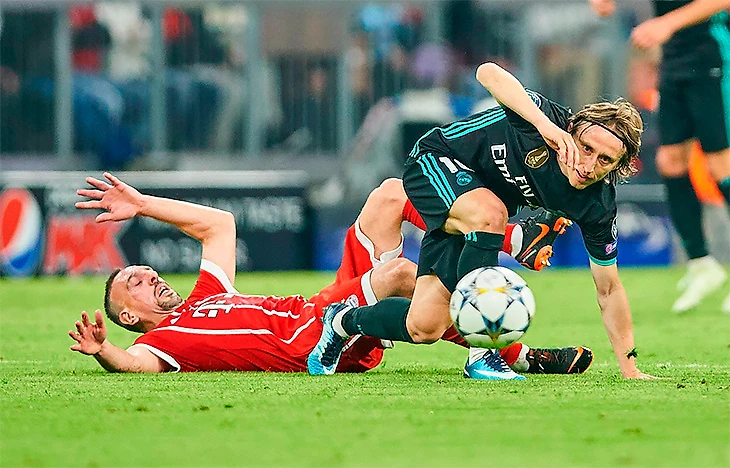 9. Кажется, Лука Модрич не умеет играть плохо, даже когда ему подсовывают издевательски требовательную роль. Против «Баварии» Лука выдвигался на одну линию с Роналду для прессинга центральных защитников «Баварии», следил за тем, чтобы линия передачи в опорную зону была перекрыта, очень быстро возвращался, если «Бавария» все-таки разбивала давление. Это лишь его роль без мяча – та часть работы, за которую его редко хвалят. С мячом он тоже, как обычно, был безупречен.