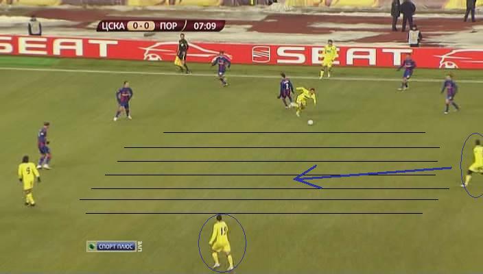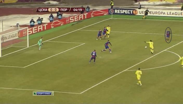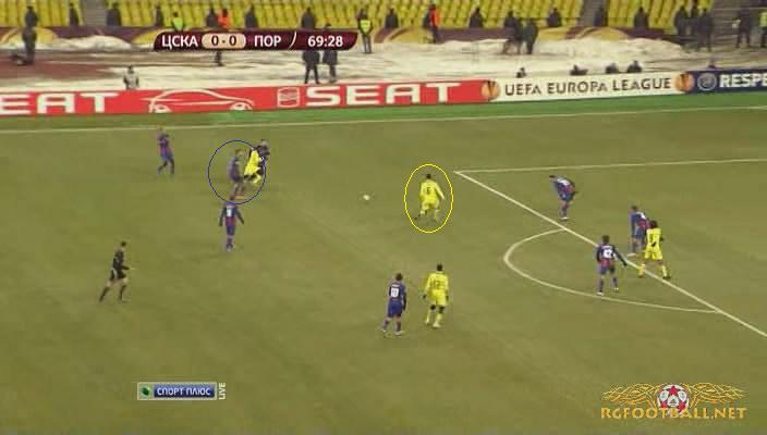 Дальше все продолжалось в том же духе. Зона по центру прямо перед штрафной ЦСКА была пустой и туда с удовольствием смещались игроки португальской команды, откуда и наносили опасные удары по воротам Акинфеева.