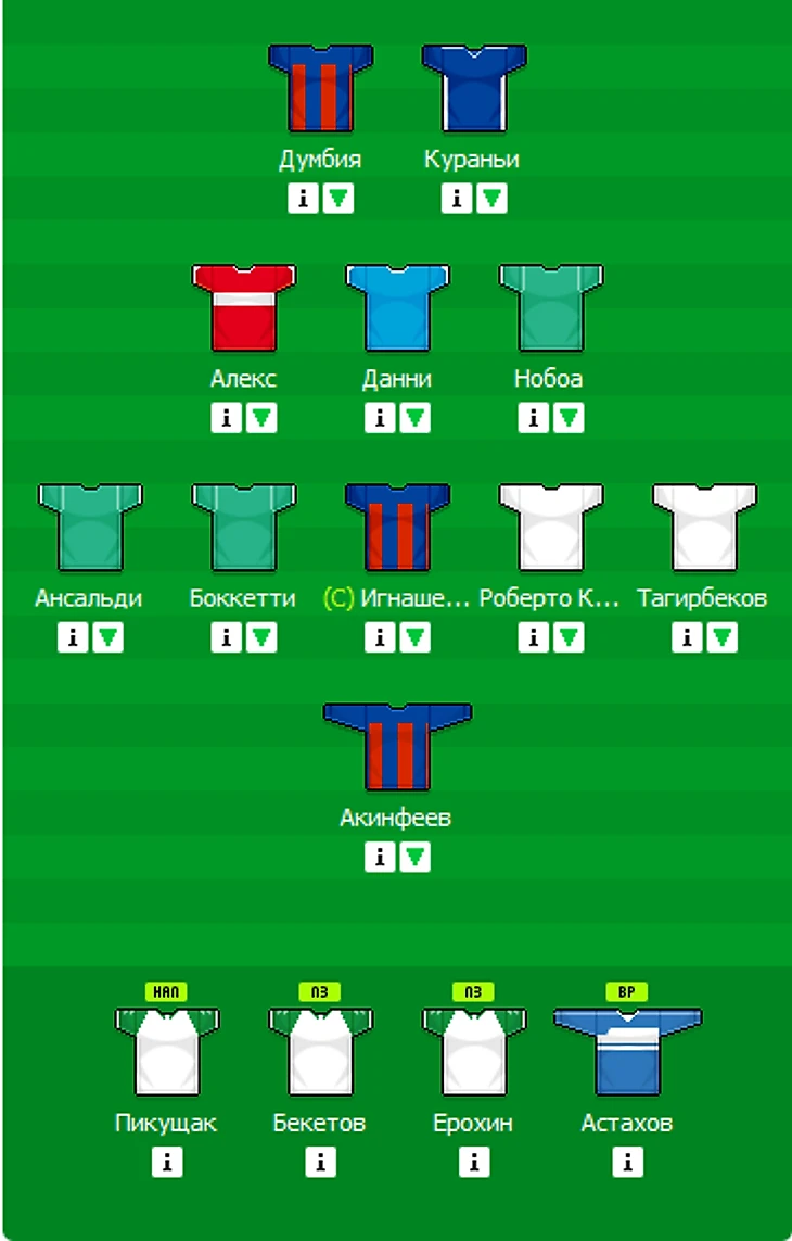 Другим аргументом стал первый тур в Ростове, где Спартак наверняка должен сыграть убедительно. И набирать очки на плохом поле в Ростове, я надеюсь, будет не изящный и быстрый Веллитон, а таранный Дзюба и интеллектуальный Алекс. Я долго выбирал между связкой Ибричич - Дзюба (+ Ионов в ротацию) и Алекс - Кураньи, и остановился на второй.