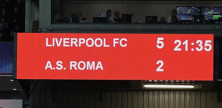 Там местный коллектив, в погоне за своим 6-ым кубком чемпионов, принимал гостей из «Вечного города», которые сенсационно выбили из ¼ турнира Леонеля Месси и его «Барселону». Пикантности противостоянию добавляло и то, что главный герой этого евросезона, египетский вожак «красных» Мохамед Салах прошлым летом переехал в дождливую часть Туманного Альбиона именно из солнечного Рима. Первые 20 минут игры прошли на встречных курсах, а «волки» даже могли открыть счет, однако шикарный удар Коларова на 19-ой минуте был парирован Кариусом в штангу. Однако затем миру вновь был явлен настоящий мерсисайдский ураган, который смел соперника с пути за вторую половину тайма. И если Мане сначала простил римлян, запоров выход 1 в 1, то Салах на 36-ой и 45-ой минуте отказался жалеть бывших одноклубников. Сначала нанеся мега-выстрел метров с семнадцати после смещения в центр, а затем изящно реализовав выход 1 на 1 после ускорения и блестящего паса Фирмино. После перерыва - больше, к 69-ой минуте на простеньком табло «Энфилда» уже горят 5-0 в пользу хозяев: Салах записывает себе еще и по «ассисту» на Мане и Фирмино, а последний успешно замыкает подачу с углового. Затем «красные» окунулись в атмосферу всеобщего праздника, а их соперники решили окончательно не уезжать с ярмарки и отквитали два мяча. Джеко на 81-ой минуте после длинного заброса Наинголана принимает мяч на грудь и бьет мимо Кариуса, а Перотти на 85-ой минуте реализовал очень спорный пенальти, за попадание мяча в руку Милнеру. В итоге «Ливерпуль» все же завершил матч с весьма комфортным преимуществом 5:2, и теперь дружине Ди Франческо предстоит повторить свой каталонский подвиг и обыграть соперника минимум с разницей в три мяча. Однако, если трезво смотреть на вещи, очевидно, что вероятность такого сценария маловероятна. Разница команд в классе очевидна, а горький урок «Барсы» не даст Клоппу и Ко отнестись к ответной игре спустя рукава, да и блестящее атакующее трио «Ливерпуля» наверняка сумеет воспользоваться огромным количеством пространства, которое римляне оставят им, полетев забивать соперникам эти самые пресловутые 3 мяча. Тяжелому трио центральных защитников очень тяжело было опекать своих взрывных визави, однако то, что силы покинут их уже на 30-ой минуте, в итоге и стоило «Роме» большой части надежд на финал…