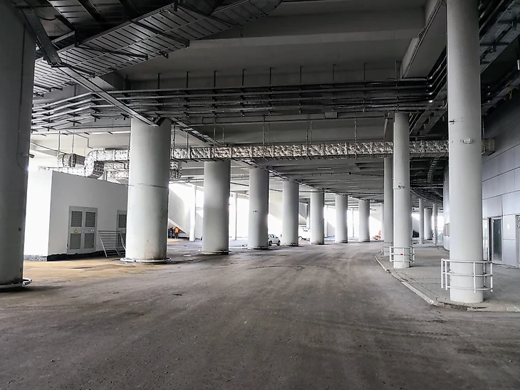 Под входными эстакадами расположилась дорога для транспорта – именно там будут курсировать автобусы команд и кортежи очень важных персон.