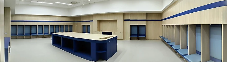 Служебные помещения оказались типовыми, их я уже видел на других стадионах. Раздевалки и вовсе как две капли воды похожи на те, что я видел в Екатеринбурге.
