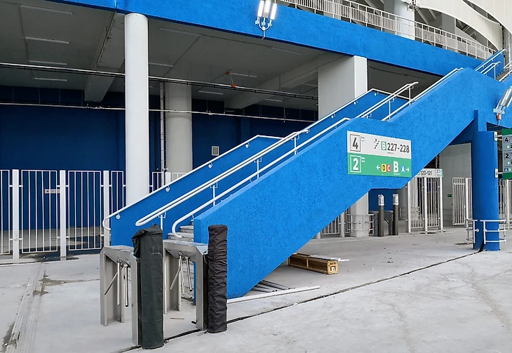 Интересно и решение установить турникеты проверки билетов непосредственно на входе на сектора. Это, по идее, должно серьезно сократить очереди, образующиеся на других стадионах именно из-за того, что турникеты стоят на входе в сам стадион, а на секторах уже просто визуально проверяют билеты. Это значит, что будет меньше нагрузки на стюардов, которые, обычно, значительно младше болельщиков и их роль больше номинальная.