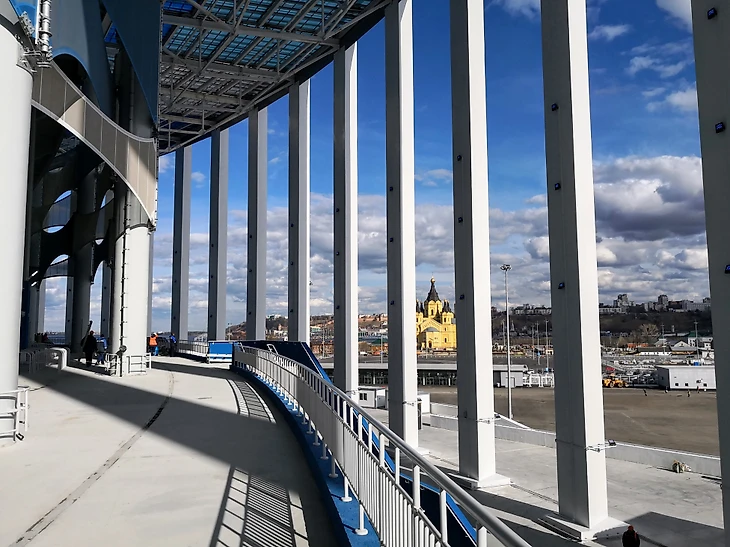 Что можно сказать по итогу? Стадион в Нижнем Новгороде очень красивый и внутри, и снаружи, и издалека. Вполне сравним с ареной в Краснодаре. По организации движения болельщиков – лучшая арена из тех, которые мне довелось посещать. Очень много пространства, широкие лестницы и проходы. Отличный вид с трибун. Даже немного завидно тем, кто будет смотреть игры чемпионата мира с этих трибун. А матчей здесь пройдет немало, помимо шести отборочных игр арена примет одну восьмую и четвертьфинал.
