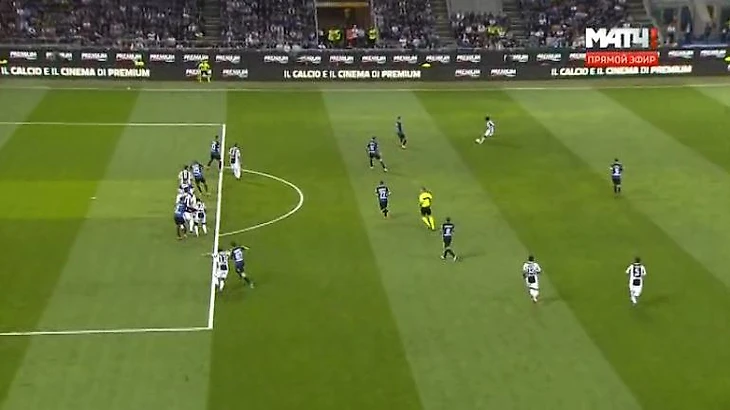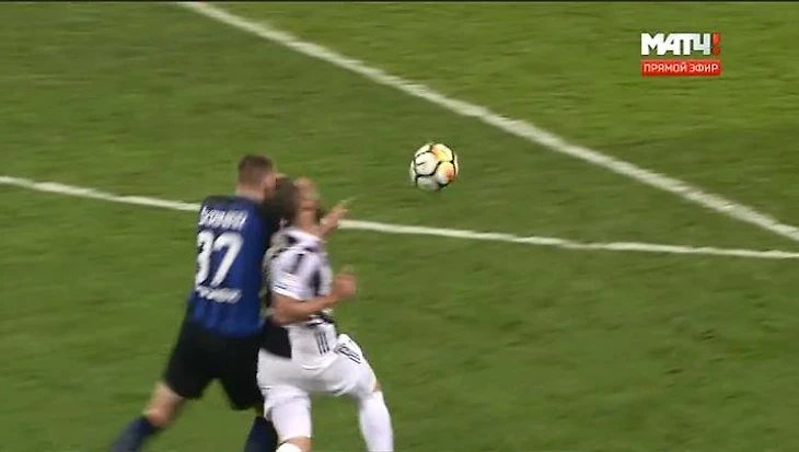 72 минута. Пауло Дибала прорывается в штрафную, Миранда мяч отбирает, но не ногами, а руками. Активно он отталкивает ими нападающего "Ювентуса" и тот падает. Дело, напоминаю, в штрафной. Пенальти?
