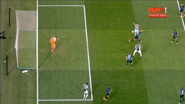 14 минута. Добавил этот момент лишь потому, что были вопросы по офсайду Дугласа Косты в момент гола. Действительно, если бы Блез Матюиди коснулся мяча, то гол должен был быть отменен. Но так как этого не было, передача шла от Хуана Куадрадо и на момент навеса ни одного игрока в положении вне игры не было.