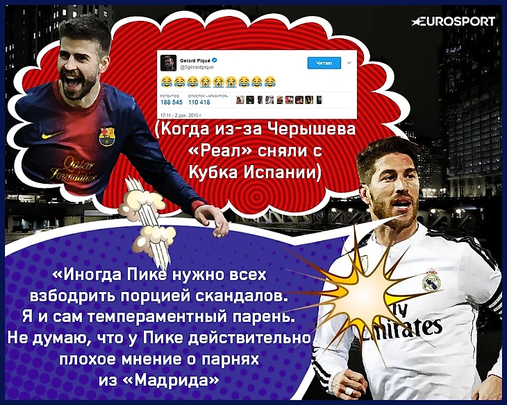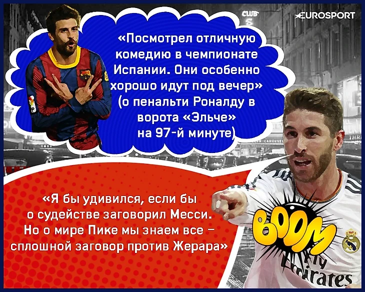 Жерар Пике, известный своим неравнодушием «королевскому» клубу, ещё раз, можно сказать, подшутил над ними этим высказыванием. У «Барселоны» и «Реала» всегда были напряжённые отношения, но точно не такие, как у Пике с Рамосом. Эти игроки всегда подшучивают друг над другом в социальных сетях, «каталонец» преуспел в этом больше.