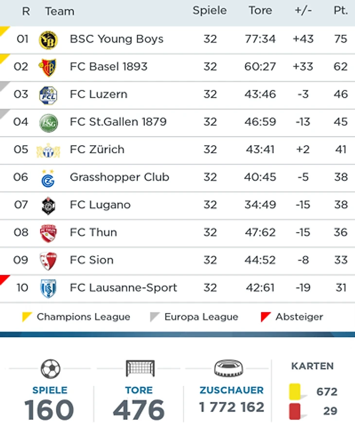 После этой игры «Грассхоппер» отодвигается от последнего места на комфортные семь очков, и теперь, вместе с «Лугано» в теории имеет даже относительно реалистичные шансы попасть в зону еврокубков. «Лозанна», похоже, готовится к сезону в Челлендж-лиге.