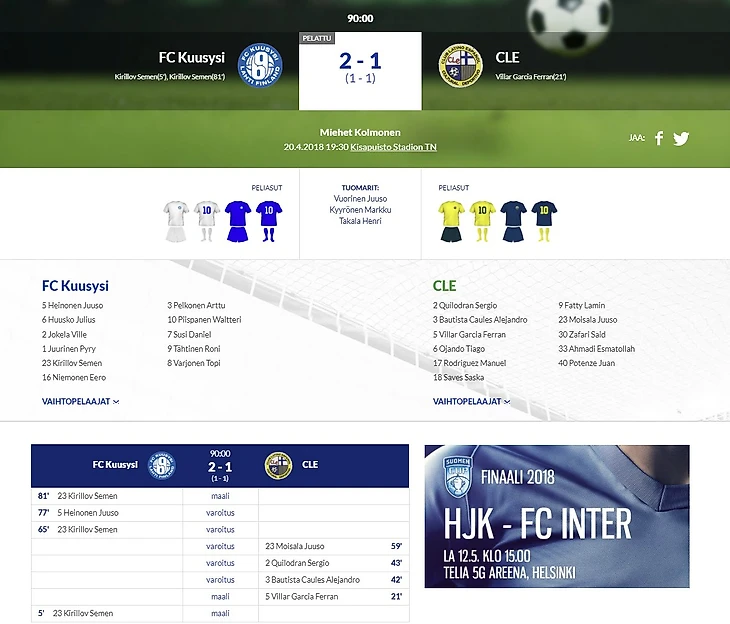 Меня зовут Кириллов Семен. С этого сезона я — футболист ФК «Куусюси» из города Лахти. На данный момент, 3-й дивизион Чемпионата Финляндии по футболу.