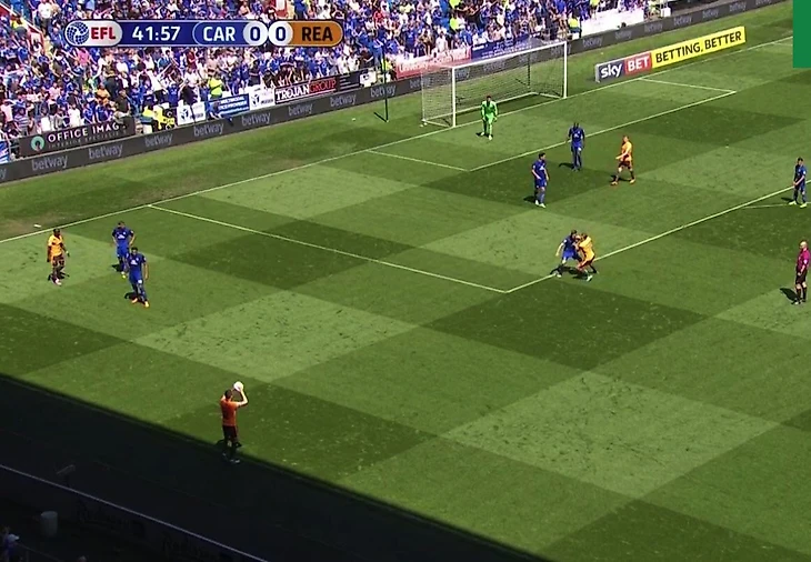 На матче «Кардифф» – «Рединг» линия тени совпала с боковой. Кажется, что игрок перепутал и вбросил не оттуда, но на самом деле все ок.