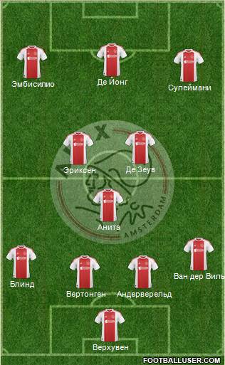 В воскресение "Аякс" провел очередную встречу в рамках Чемпионата Нидерландов с "Виллем II", который на данный момент занимает 16 место в турнире. Состав который выставил Де Бур на игру, скорее всего выйдет и в Лужниках. Вот как он выглядел:
