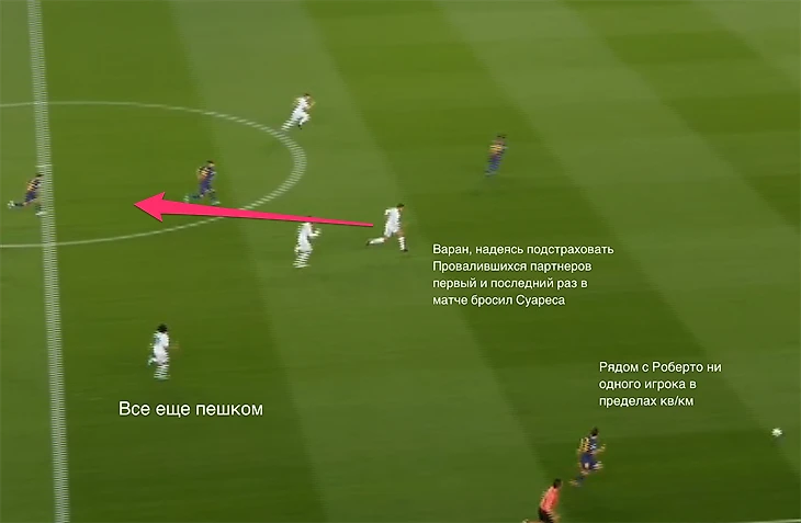 Но были и момент настоящей хардкорной персональщины. Здесь Варан уничтожает Луиса в глубине половины поля Барсы