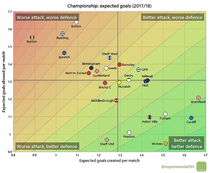 Говоря об xG, мы сразу выделяем «Вулверхэмптон» и «Кардифф». Тот случай, когда таблица и показатели данной модели говорят об одном и том же.