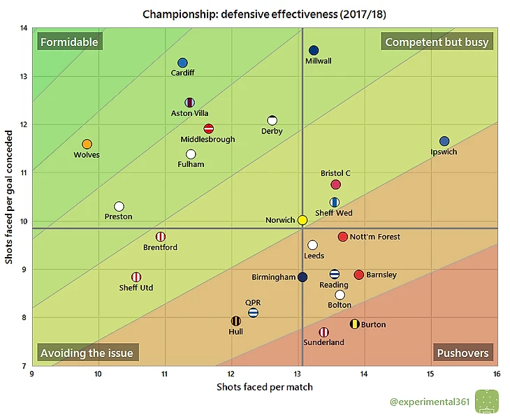 В ворота «Миллуолла» и «Кардиффа» забить в этом сезоне было тяжелее всего (в среднем соперники наносили чуть больше 13 ударов на гол).
