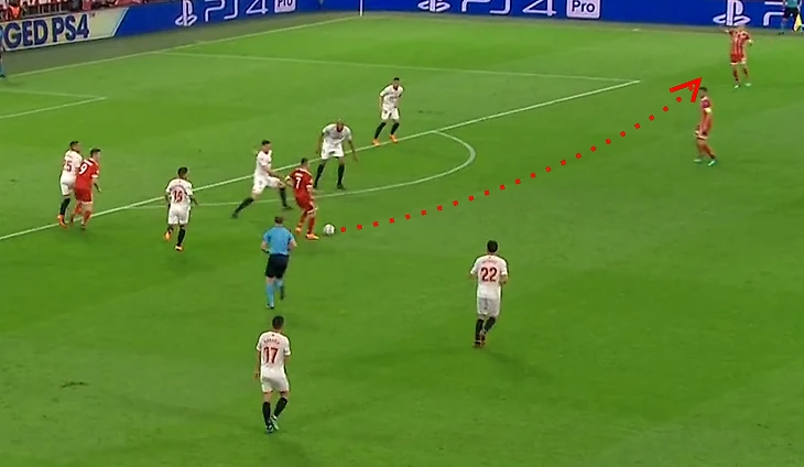 Этот приём прежде всего призван растянуть оборону противника, создать изоляцию для игроков на противоположном краю поля.