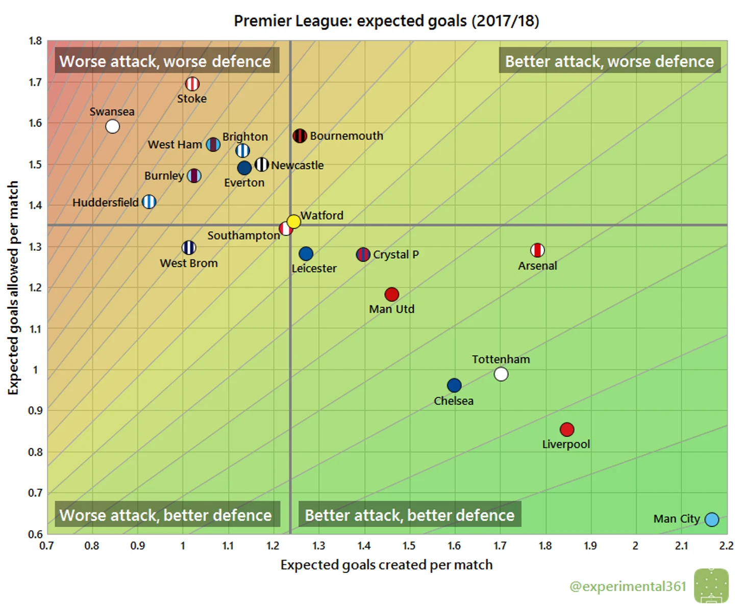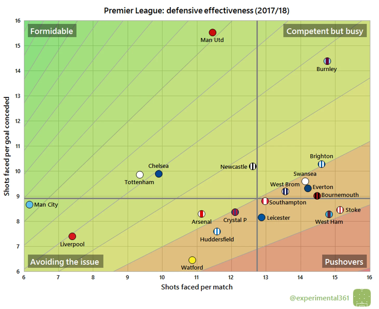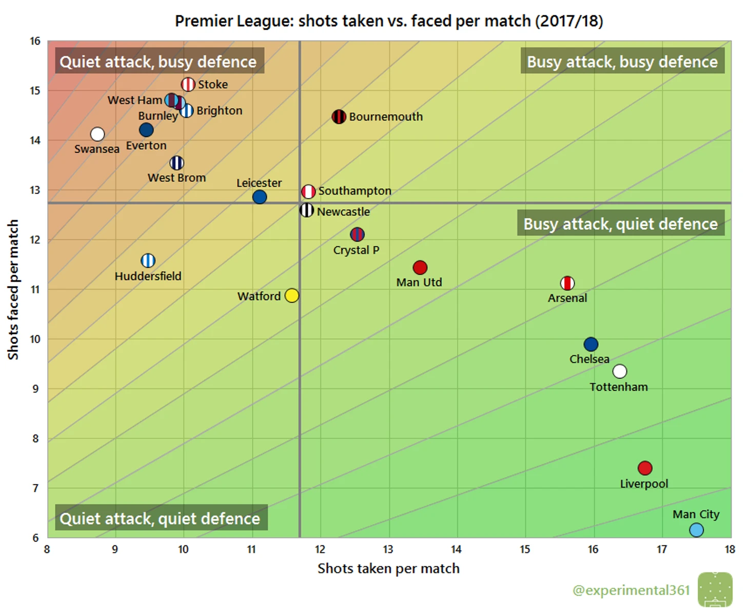 Эта диаграмма еще раз подчеркивает тот факт, что «Суонси» и «Сток», например, даже рядом не стояли с «Кристал Пэлас», а вот «ВестБром» были не так уж и плохи…