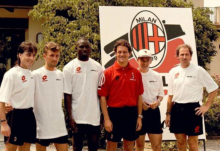 Новички красно-чёрных с капитаном Барези и тренером Капелло. Лето 1995 года