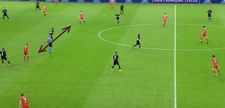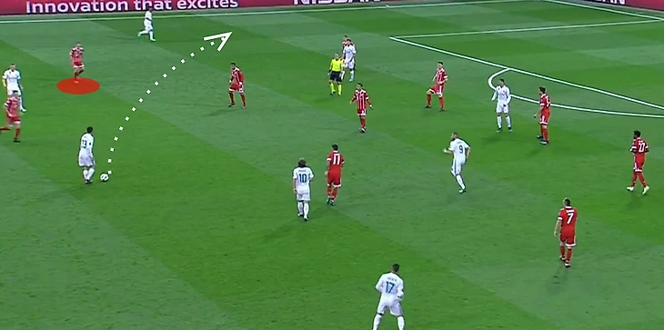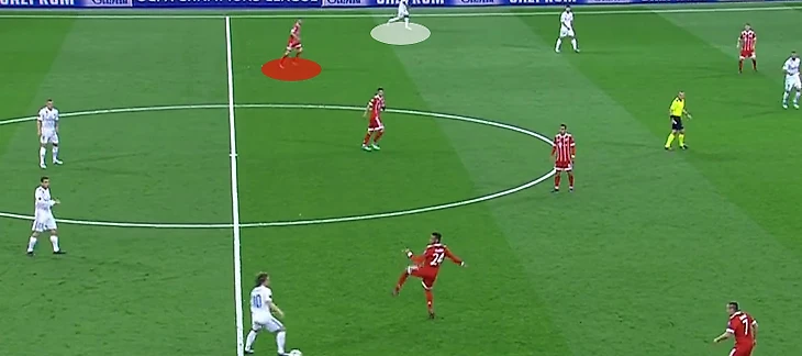 Т.к. Модрич был прикован к правому флангу, да и Ассенсио часто дожен был следить за Киммихом, Бавария получала пространство в центре, где Каземиро оставался в одиночестве.
