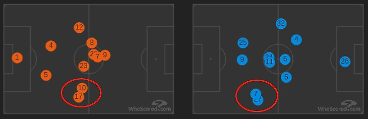 В нападении положение дел также было не лучшим. Томас - это игрок, который постоянно перемещается по полю и пытается найти себя в свободной зоне. Обычно это является положительным качеством, но не в данной ситуации. Т.к. большую часть времени Мюллер не находился на своём фланге, у мюнхенцев просто не было возможности создавать там численное преимущество и разыгрывать комбинации.