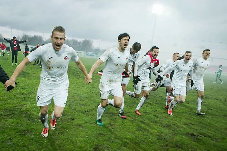 Самые именитые клубы в истории литовского футбола «Каунас» и «Экранас» в элите сейчас отсутствуют. Гордое знамя флагмана несет «Жальгирис», который становился призером в 21-м розыгрыше чемпионата Литвы (рекорд, между прочим). Четыре года кряду вильнюсцы были непобедимы, пока в борьбу не ворвалась «Судува» Чебурина, выигравшая золото в 2017-м. Для команды из Мариямполя – это первая победа в истории.