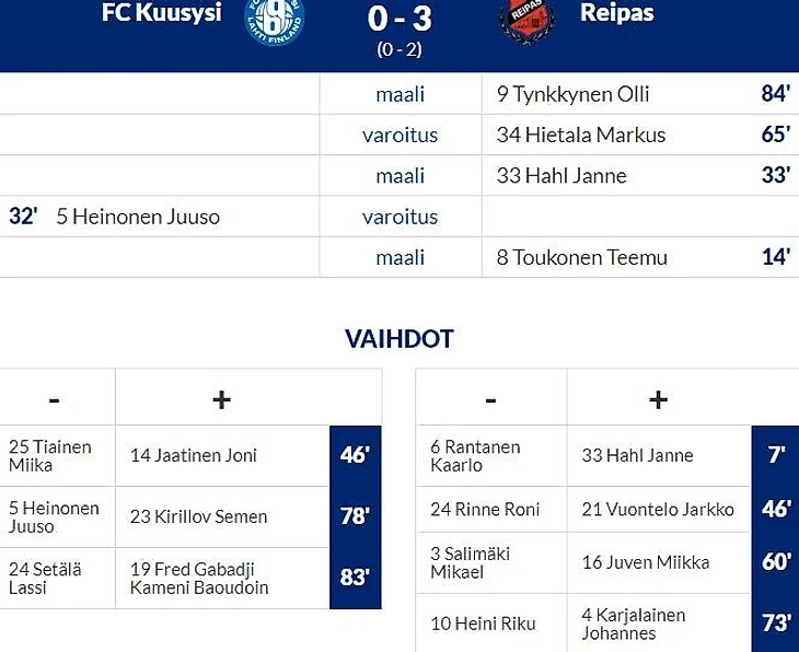 До перерыва было пару опасных моментов у ворот «Куусюси», но благодаря нашему молодому 18-летниму вратарю, пришедшему из молодежки ФК «Лахти», счет сохранился на отметке 0-2.