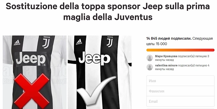 «Мы просим Adidas и «Ювентус» пересмотреть этот концепт и использовать аппликацию спонсорского логотипа, как на форме этого сезона. Таким образом вы избежите падения продаж и потери потенциальных покупателей», – говорится в петиции.