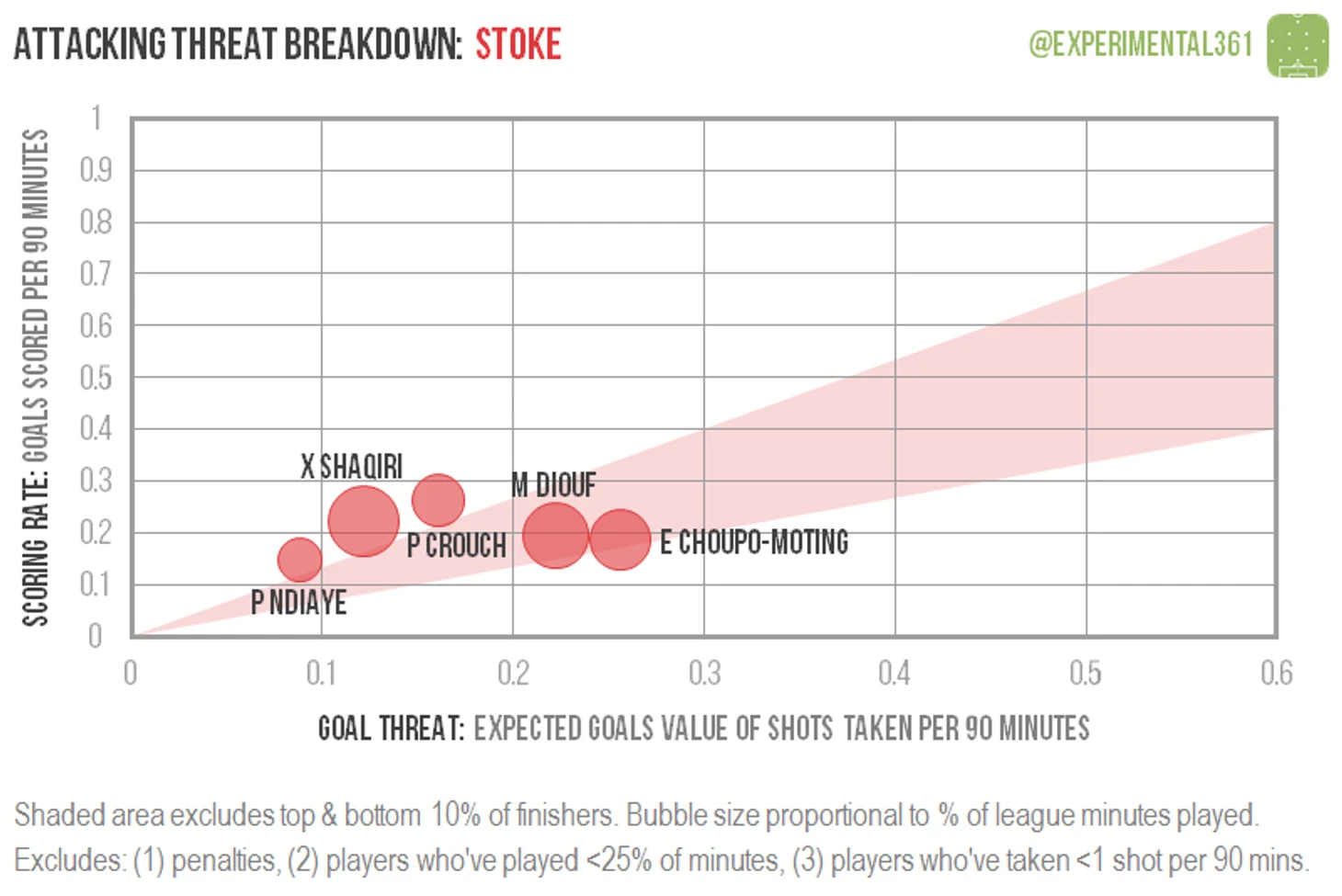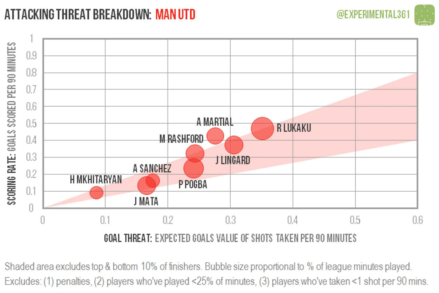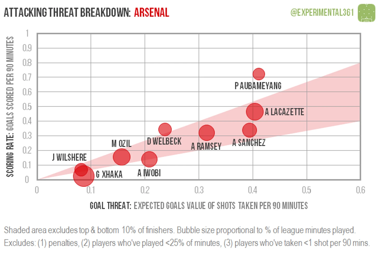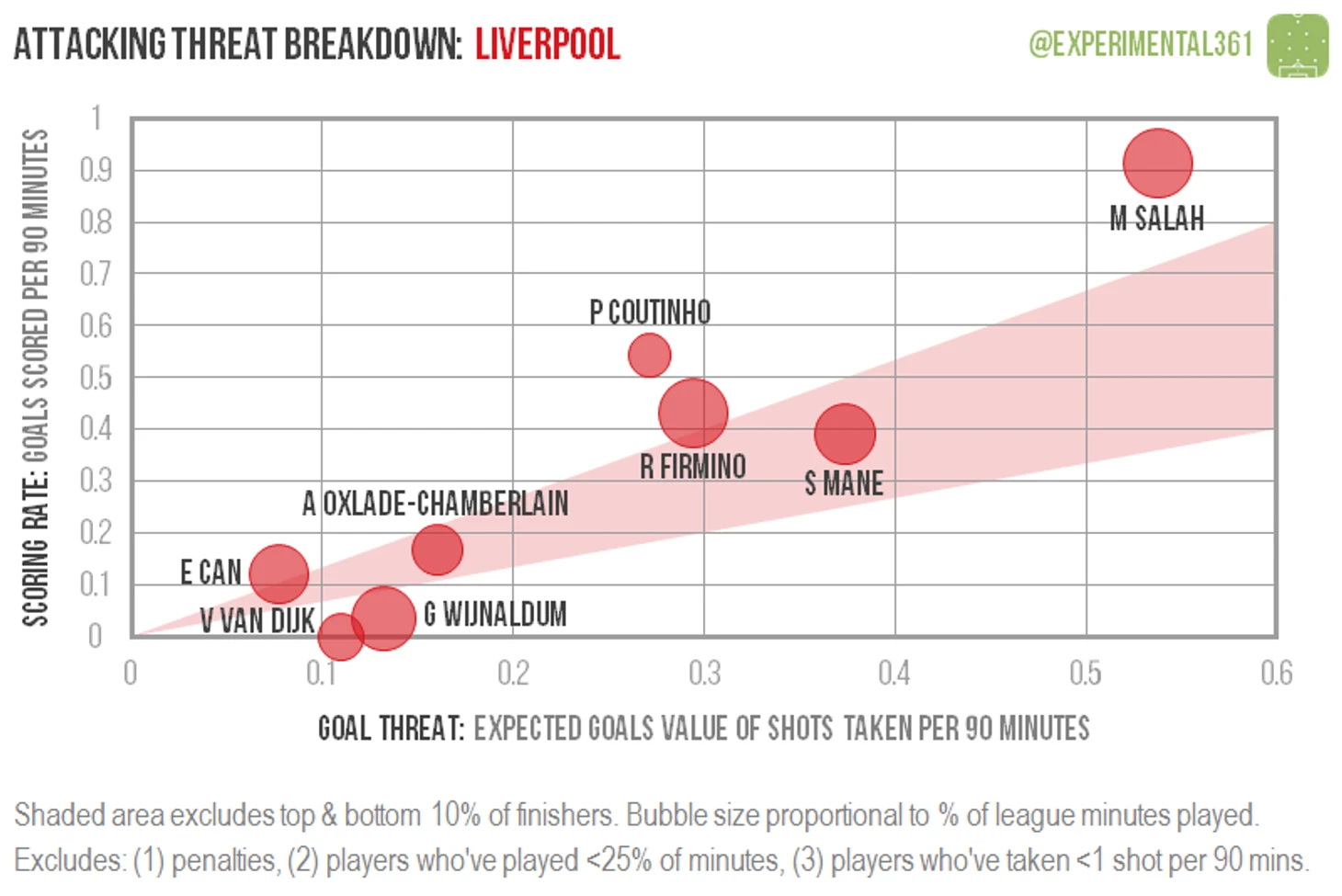 На горизонтальной оси изображено значение «ожидаемых голов» после ударов, нанесенных за 90 минут.
