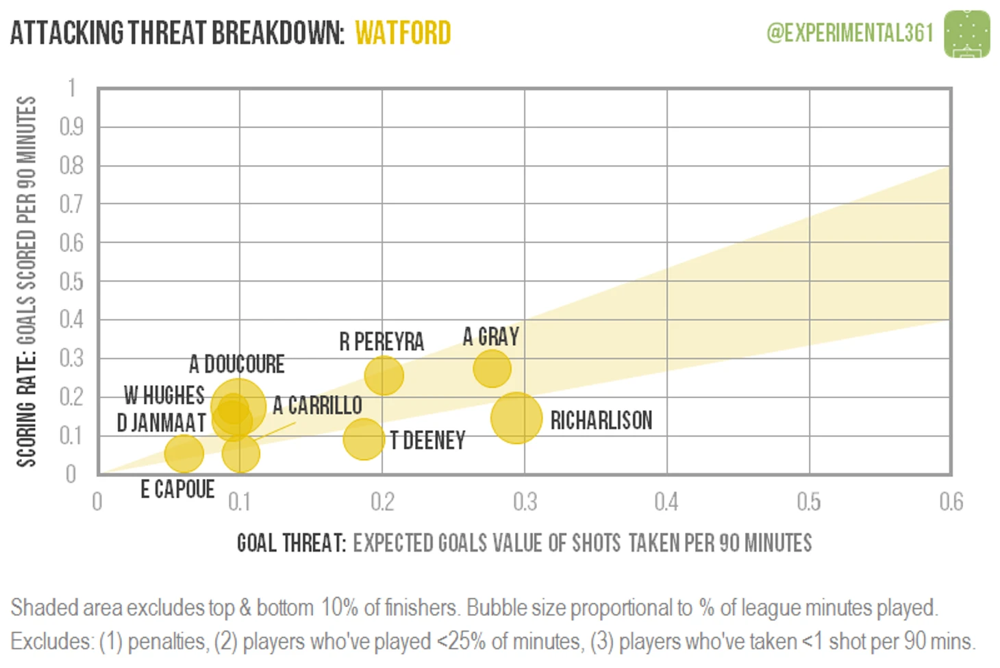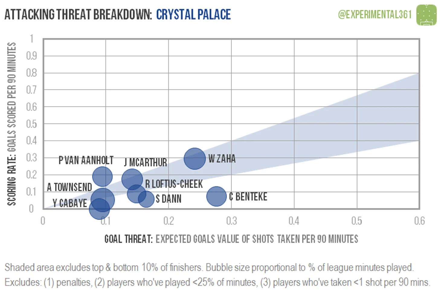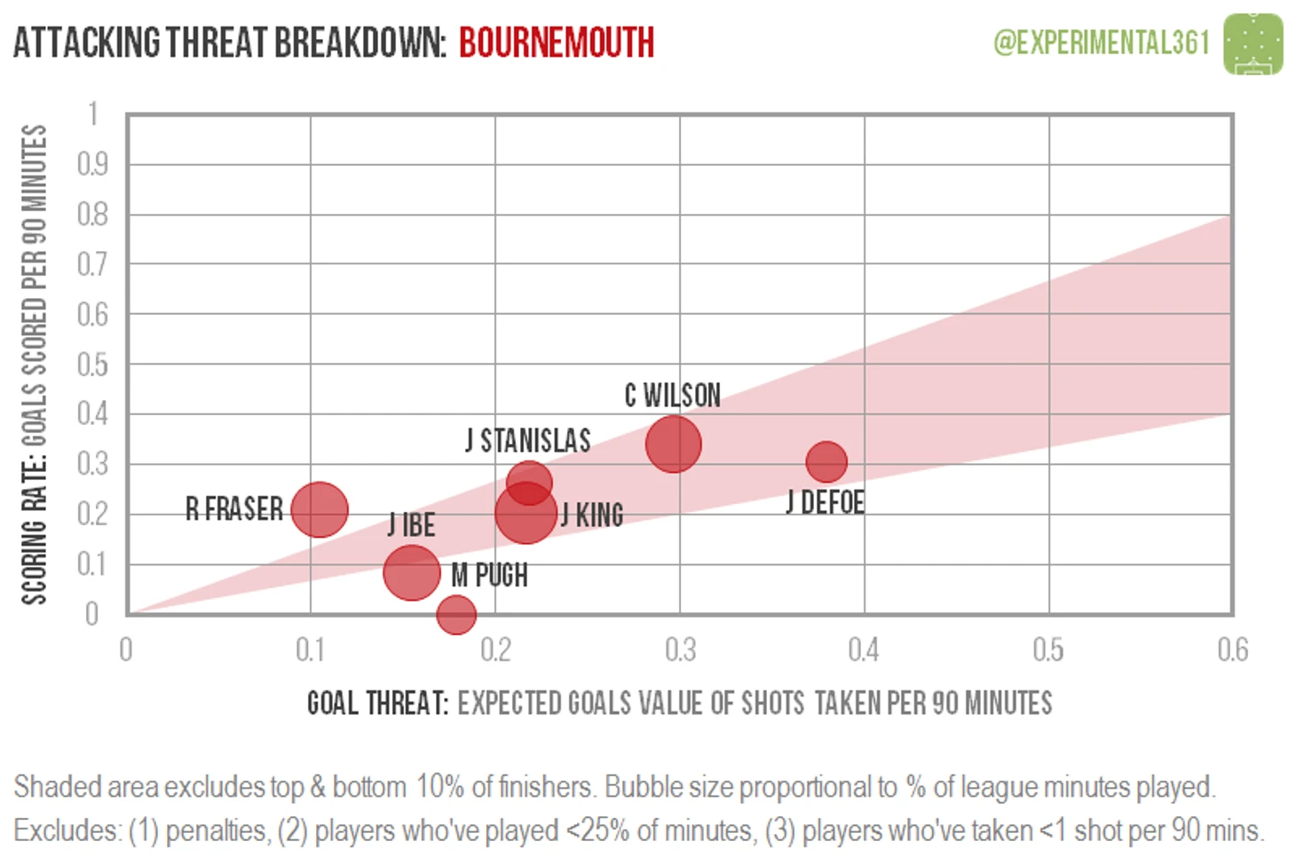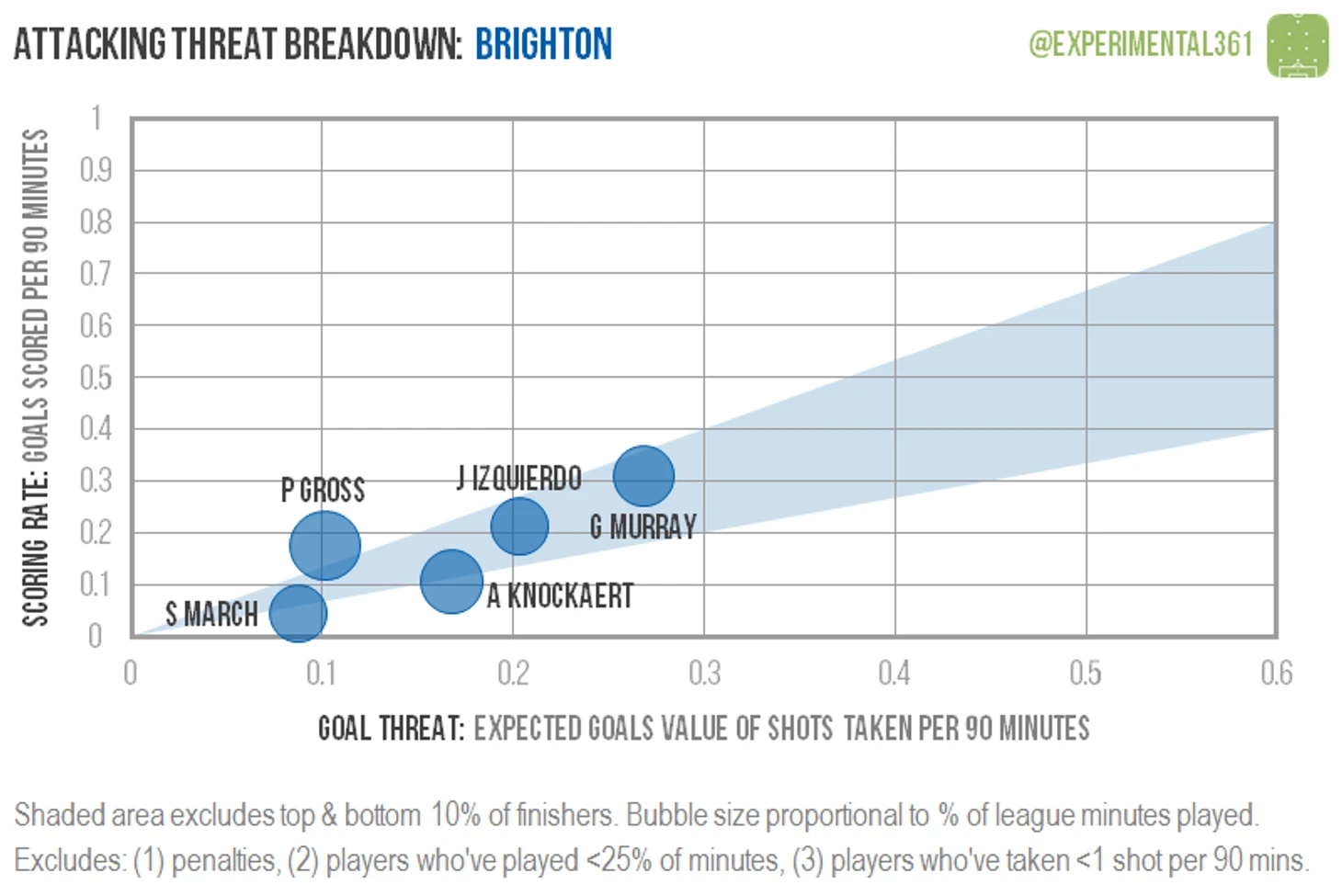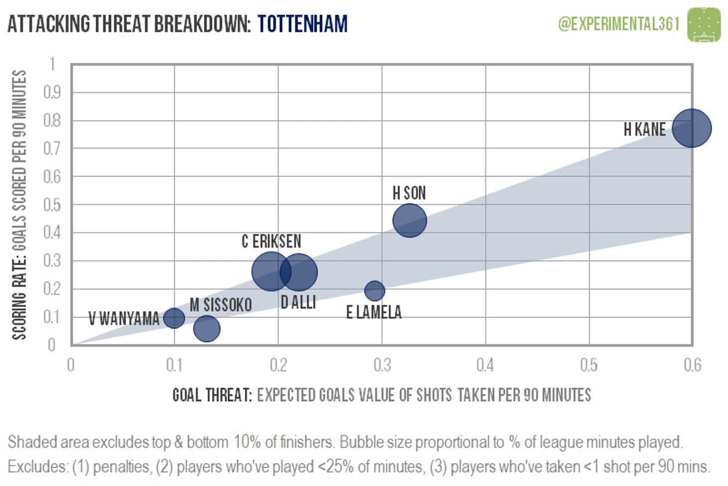 На горизонтальной оси изображено значение «ожидаемых голов» после ударов, нанесенных за 90 минут.
