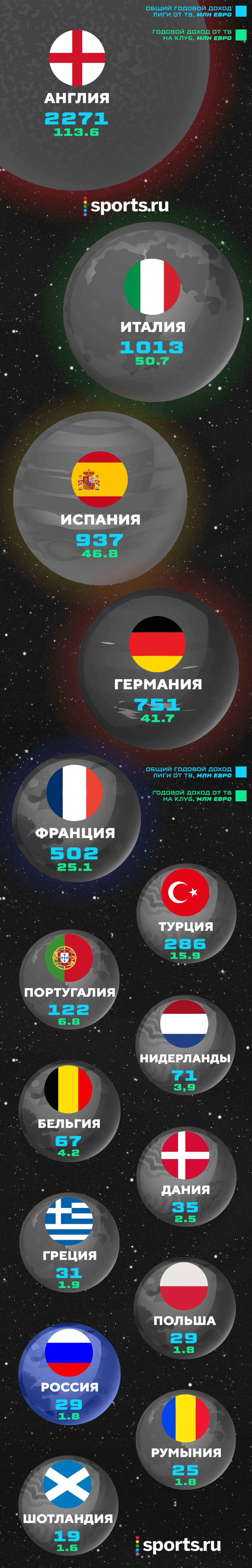 Даже Дания и Греция получают за футбольные телеправа больше России