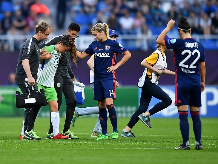 сам "Вольфсбург" остался в меньшинстве. Опытная Александра Попп... Трехкратная чемпионка ЛЧ и Бундеслиги, олимпийская чемпионка, дважды лучшая футболистка Германии в самый ответственный момент фолит в грубом подкате на Делфин Каскарино. Фолит, уже имев "за спиной" желтую карточку.