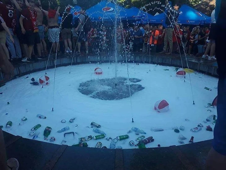 А спустя полчаса, когда люди начали расходиться, приехали клининг-службы, двадцать минут - и вуаля, чистенько все, машины ездят, люди с детьми гуляют, красота. Смотришь и не веришь,что буквально час назад( или две кружки пива) все было засрано.