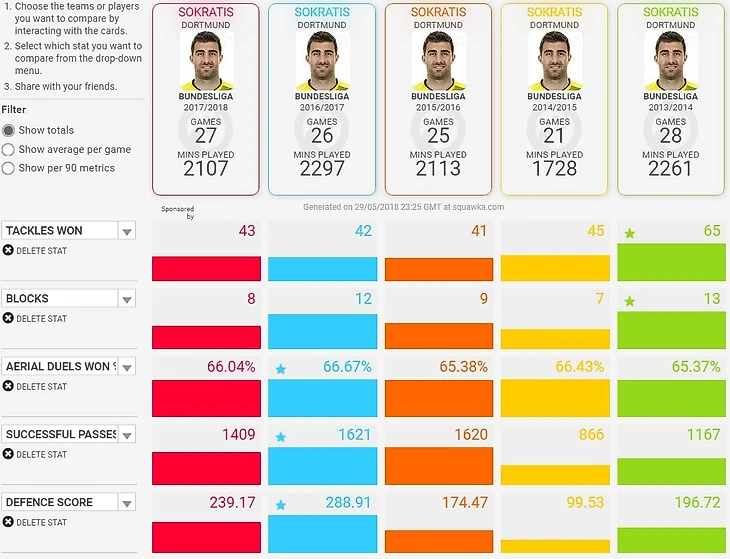 Статистика Сократиса за 5 сезонов в Боруссии Д