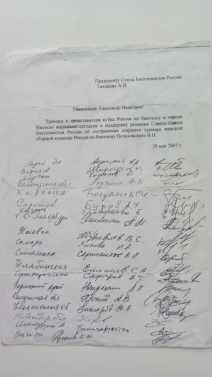 Письмо, благодаря которому в 2007 году был отстранен от сборной Польховский