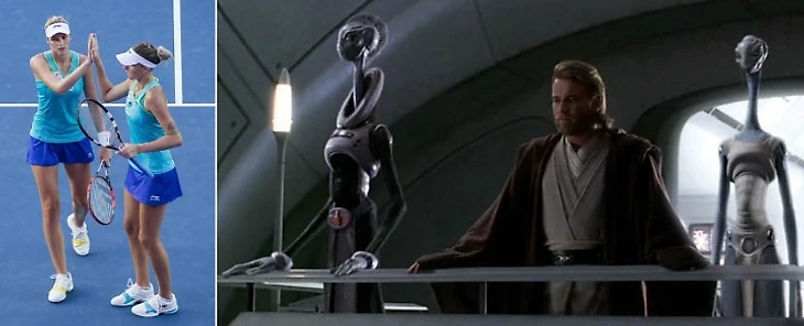Теннисные сёстры-близнецы Каролина и Кристина Плишковынастолько длинноноги и -руки, что напомнили те же «Звёздные войны». Эпизод из «Атаки клонов».