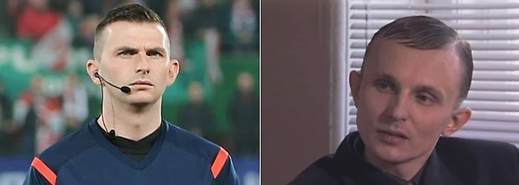 Любителям старого отечественного сериала «Агенство НЛС» понравится это сходство, а нелюбителям арбитра Майкла Оливера, наверное, тем более. Два бандита:) В роли Кати-Катафалка питерский актёр Сергей Уманов.