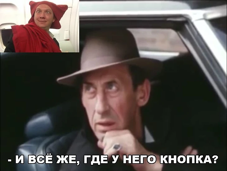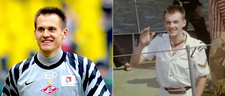 А вот это сходство прислал мне пользователь Тракторыст, вы, кстати, тоже присылайте. Артёма Реброва, думаю, все знают, а рядом с ним кадр из фильма «Самолёт летит в Росиию» (1994) с актёром Игорем Головиным.