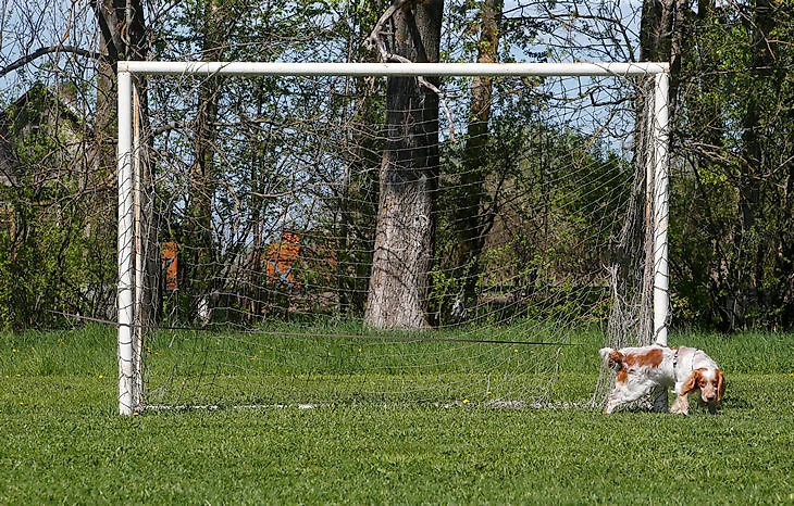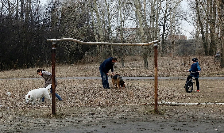 Импровизированные ворота на Острове отдыха в Красноярске, похоже, собак видят чаще, чем футболистов.