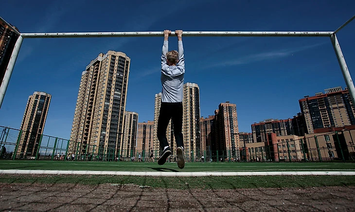 Чем занимаются вратари, когда мяч далеко от ворот? Правильно – висят на перекладине. Ворота на одной из площадок Санкт-Петербурга это позволяют делать без риска.
