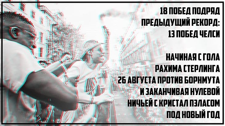 18 побед подряд, но до этого был рекорд 17 у Арсенала и еще парочки команд. Какие 13?