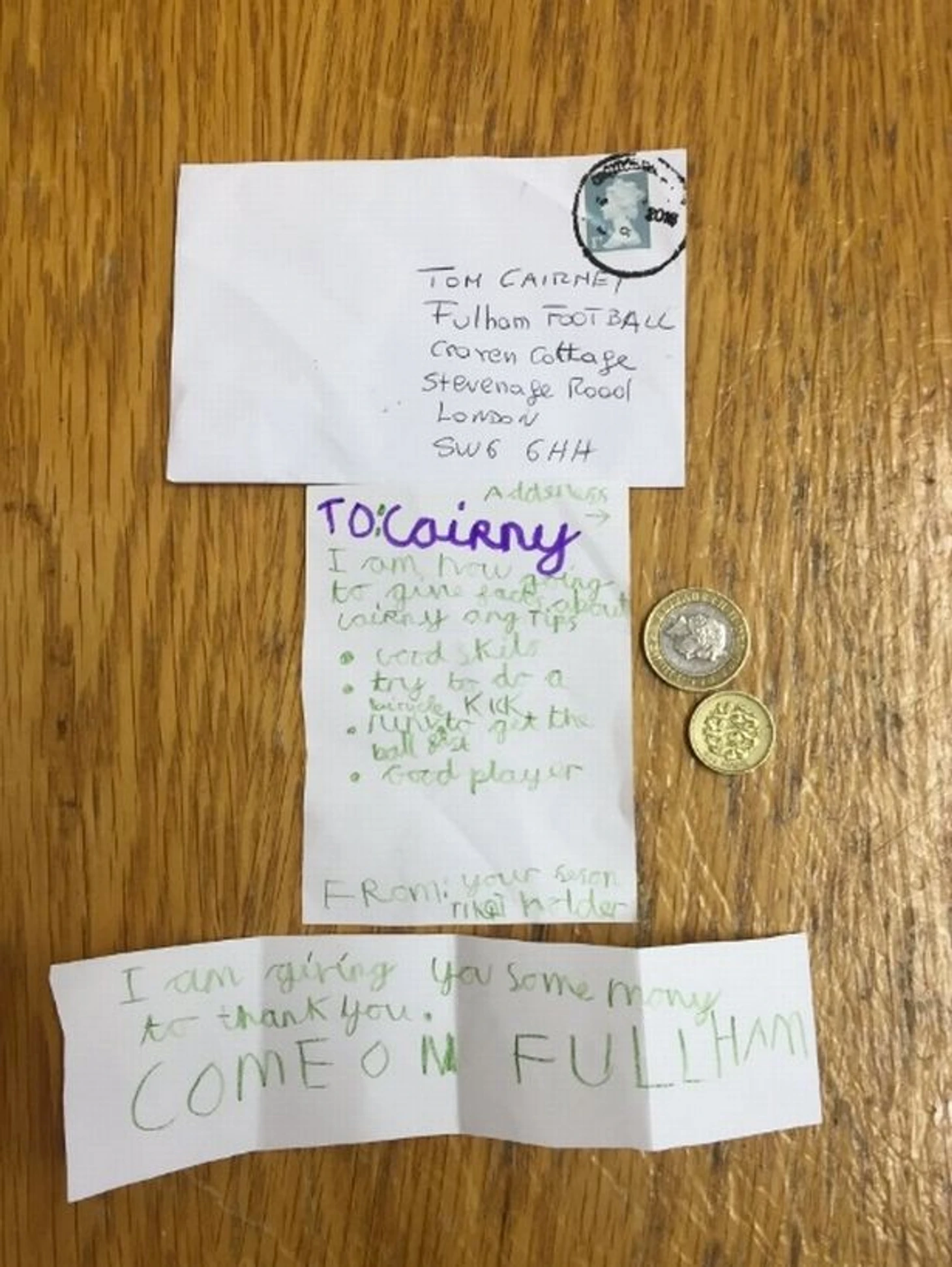 Теперь Том сам герой для мальчишек Лондона!Так молодой фанат отправил свои накопления,чтобы поблагодарить капитана команды