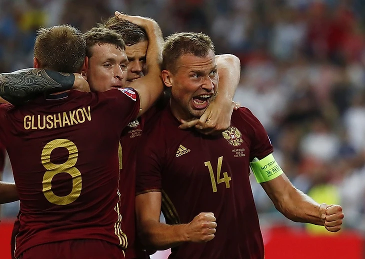 Акинфеев - Игнашевич, Фернандес, Жирков - Дзагоев - Головин, братья Миранчуки, Смолов - Дзюба, и Ерохин! По схеме 3-1-4-2 :)