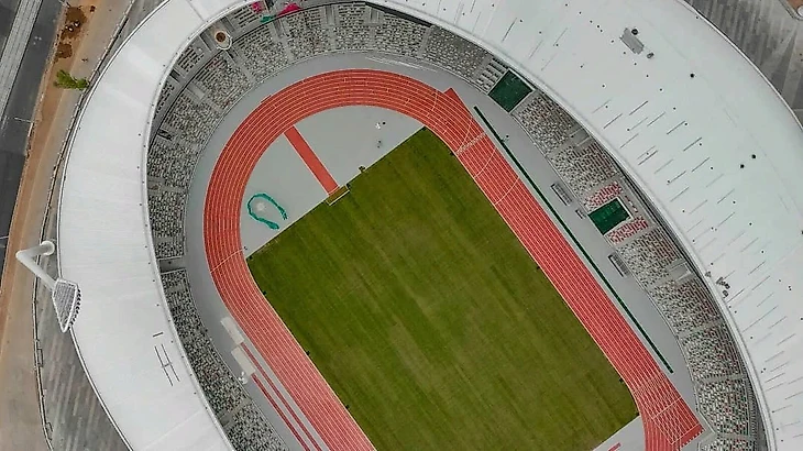 2. Стадион реконструировали к европейским играм, концепция соответствующая: олимпийский стадион, а не футбольный.