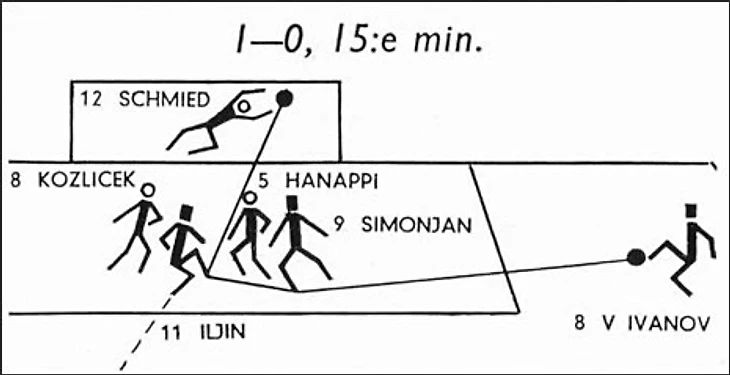 В самом начале второго тайма австрийцы получили великолепную возможность сравнять счет, но Лев Яшин отразил пенальти в исполнении Ханса Буцека, а еще через 10 минут Валентин Иванов точным ударом установил окончательный счет. 2:0 - есть первая победа сборной СССР на чемпионате мира по футболу!