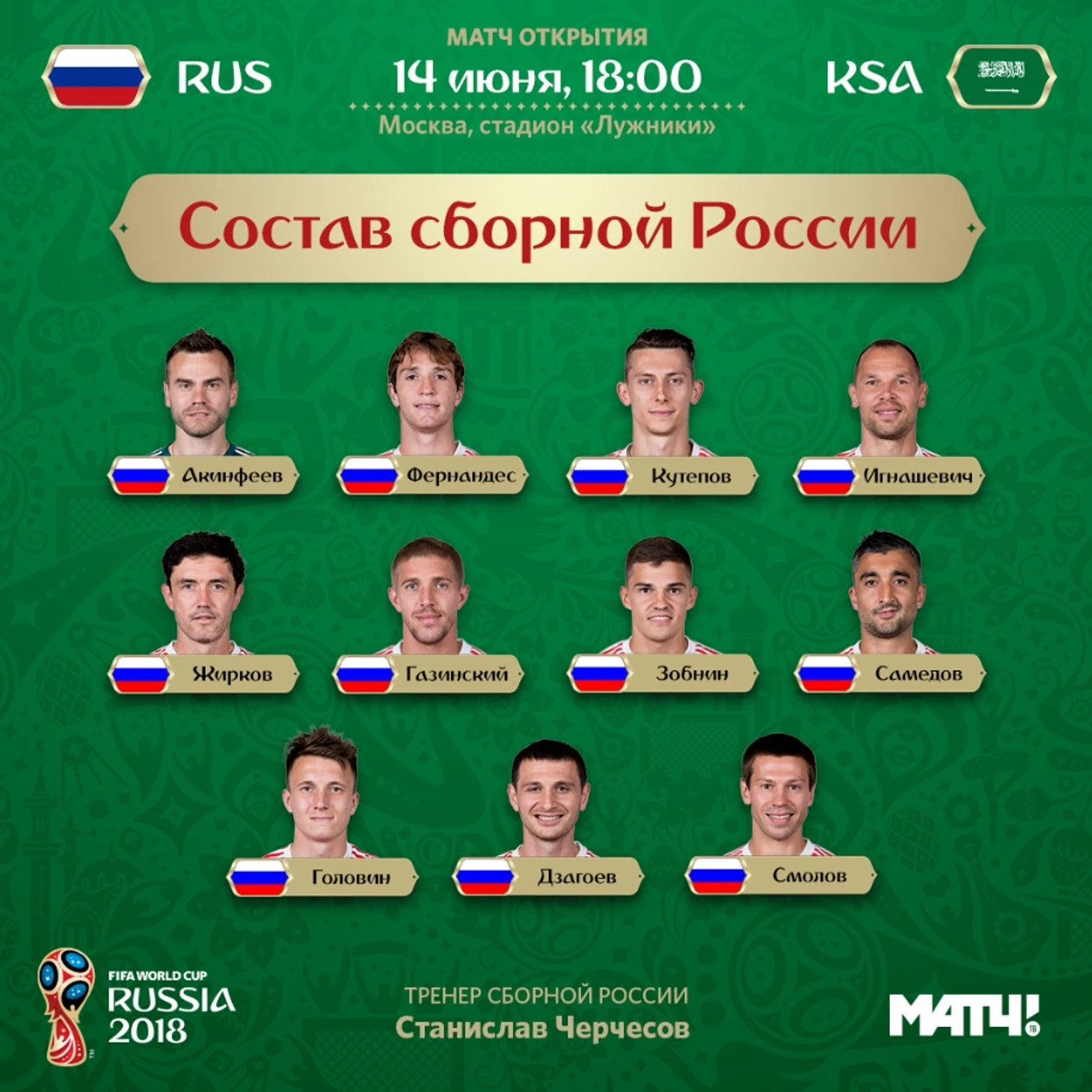 Станислав Саламович не стал отходить от состава, который наигрывался в последнем контрольном матче с Турцией. В принципе по составу юыл только лишь один вопрос, а нужны ли два опорных полузащитника против не самой атакуещей сборной турнира, ведь логичне было бы поставить в старт Миранчукаи насытить атакующую зону. У саудитов же состав был понятен, играли только лишь самые сильные из тех что были.