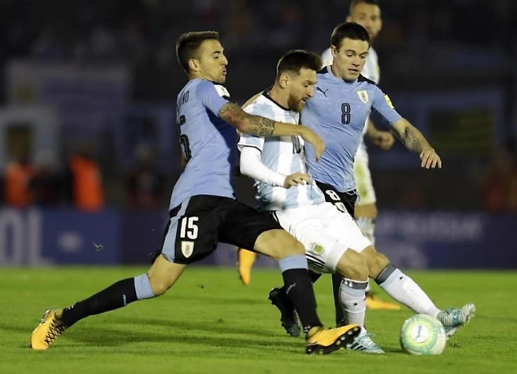 У главного тренера не было времени на раскачку. Задача выхода на Чемпионат Мира требовала положительного решения. Сампаоли посмотрел 32 игрока на кратковременных летних сборах в Юго-Восточной Азии и принялся внедрять идеи в жизнь. Соперники для старта подобрались жёсткие и неуступчивые - Уругвай и Венесуэла. На выезде в Монтевидео в арсенале аргентинских атаканте присутствовали привычные дриблинг Месси из центра поля с попытками забросов за спины скрупулезно читающим игру уругвайским защитникам да прострелы/навесы Анхеля Ди Марии с левого фланга. Вариативности атаке явно не хватало, в действиях игроков сквозила несыгранность, затаивший товарищескую обиду Месси в упор не замечал Мауро Икарди на острие. Кусачий Уругвай обещал наказать за любую оплошность: пришлось держать пять игроков сзади (три защитника, а также пара Лукас Биглия - Гидо Писарро в опорной зоне). Сухая по содержанию игра осталась таковой по счёту (0:0). Казалось бы ничего, дальше играть дома, всё получится. Столичные Монументаль и Бомбонера ждали следующие матчи Альбиселесте.