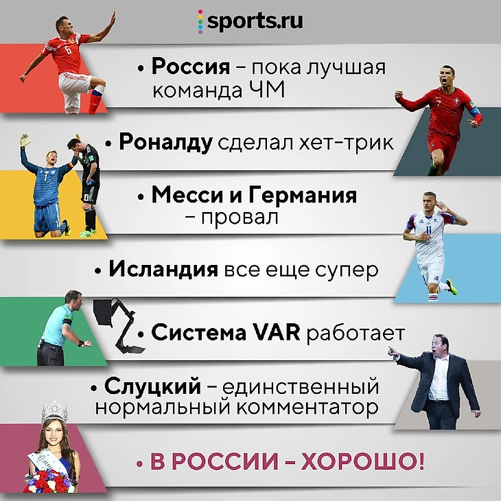 К пятому дню чемпионата мира произошло столько событий, что хватило бы на отдельный турнир. Вспоминаем, что все обсуждали на первой неделе ЧМ в России.